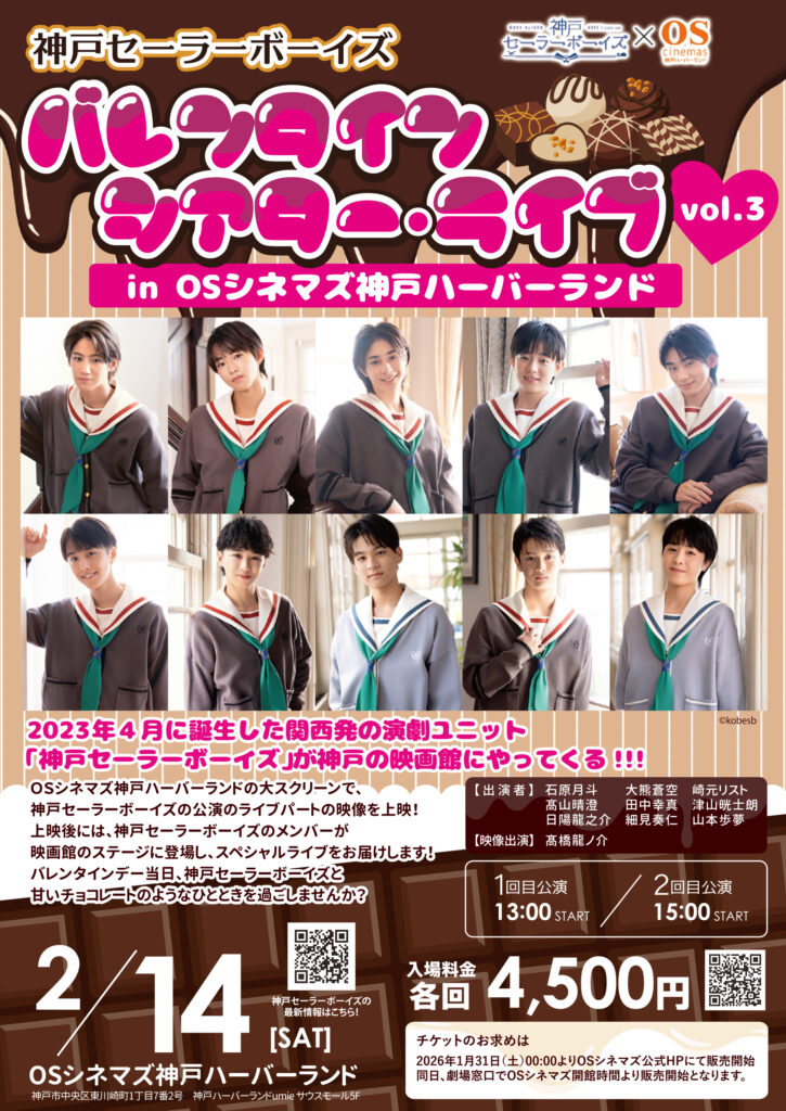 今年もOSシネマズ神戸ハーバーランドで神戸セーラーボーイズからバレンタインをお届けします!
